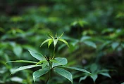 낮게 깔린 푸른 잎사귀 사이로