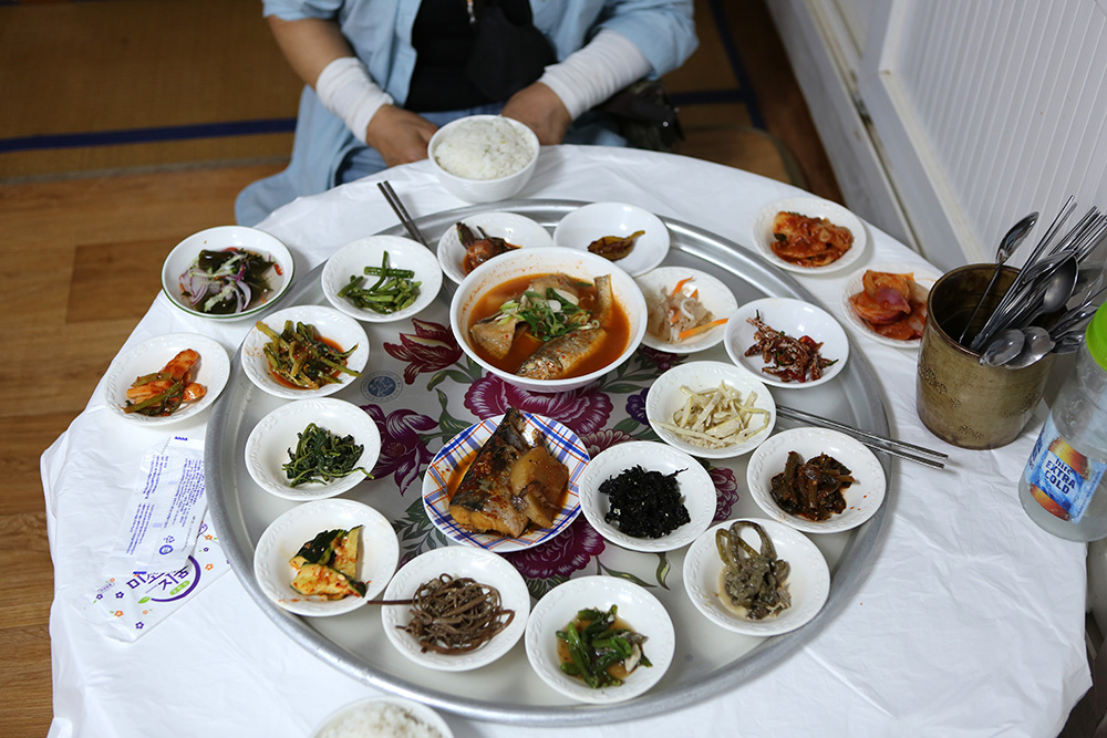 매일 몇 가지 메뉴가 비뀐다는데 해파리 무침과 조기찌개와 고등어조림이 입맛을 돋군다.