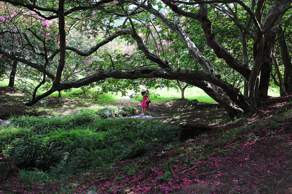 꽃을 관상하기 위한 조경수로 이용되는데 요즘 남쪽 지방에는
