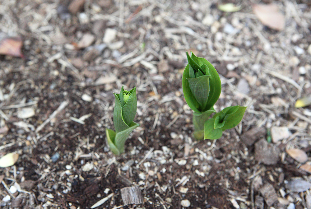 새순에 물방울 하나씩 달고서 생글생글합니다.