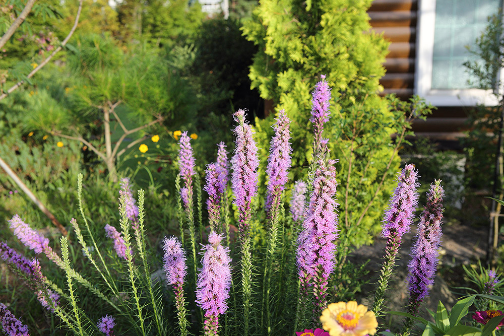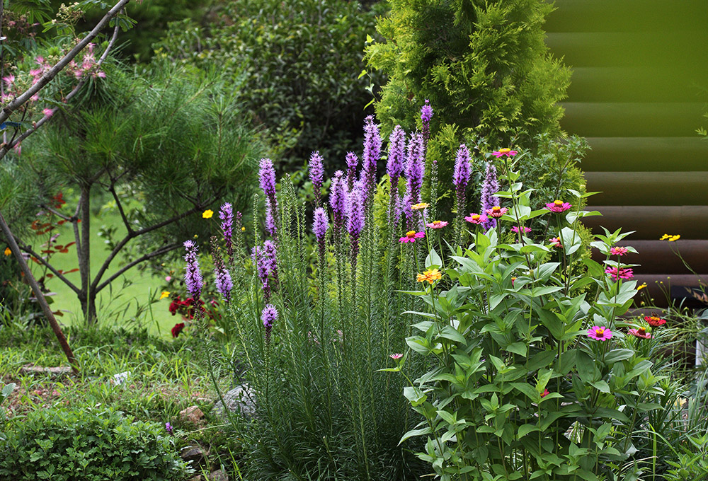 자잘한 꽃들이 다닥다닥 위에서부터 피는 리아트리스.