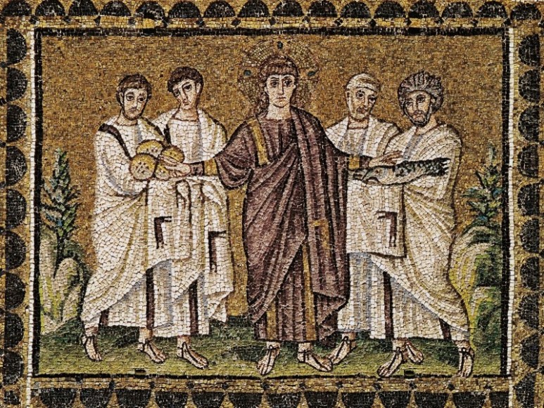 87 <빵과 물고기의 기적>, 520년경, 산 아폴리나레 누오보 바실리카의 모자이크, 라벤나