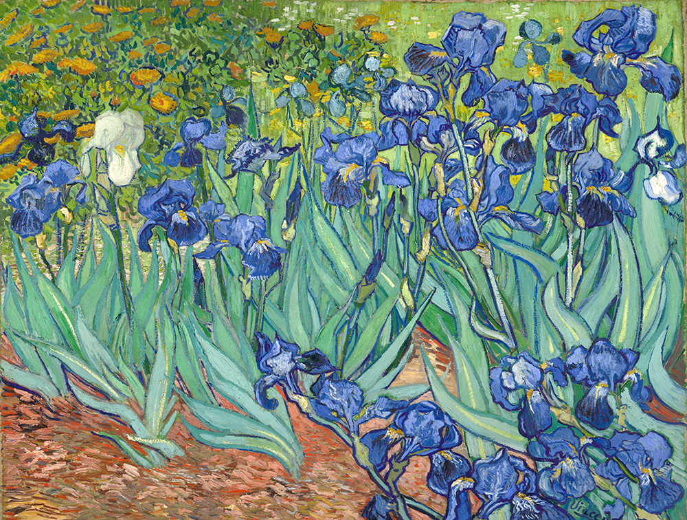 별이 빛나는 밤붓꽃, 1889년 5월. J. 폴 게티 박물관, 로스앤젤레스빈센트 반 고흐 - 감자 먹는 사람들빨래하는 여인들이 그려진 아를의 랑글루아 다리, 1888, 1880년대, 유화, 65x54cm뽕나무선한 사마리아인신발씨로 말려진 네 송이 해바라기, 1887, 유화, 100x60cm씨뿌리는 사람, 1888, 1880년대, 유화, 80x64cm아몬드 꽃해바라기가 있는 꽃병해바라기 (F.458), 4번째 버전 반복(노란색 배경),반 고흐 미술관편백나무가 있는 밀밭, 1889년 9월. 뉴욕 메트로폴리탄 미술관장미
