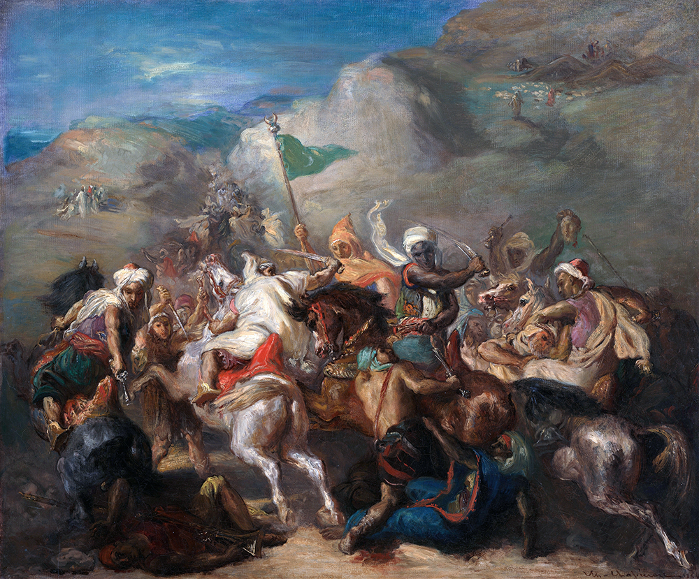 Théodore Chassériau는 도미니카 출신의 프랑스 낭만주의 화가로 초상화, 역사 및 종교 그림, 우화 벽화, 알제리 여행에서 영감을 받은 동양주의 이미지로 유명합니다. 경력 초기에 그는 스승인 Jean-Auguste-Dominique Ingres)와 가까운 신고전주의 양식으로 그림을 그렸지만, 후기 작품에서는 외젠 들라크루아의 낭만주의 양식에 강한 영향을 받았다. 셰익스피어의 오델로를 묘사하기 위해 일련의 판화를 만들었고, 프로스페르 마릴하의 15세 때 그가 그린 초상화로 인해 테오도르 샤세리아우는 루브르 박물관에 전시된 최연소 화가가 되었다.