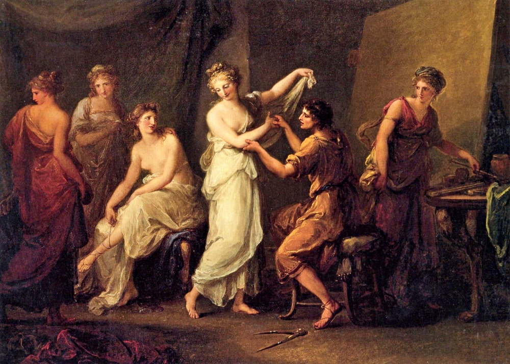 고워 백작의 가족(1772년), 캔버스에 유채, 150.4 x 208.2cm, 워싱턴 D.C. 국립 여성 미술관그림과 음악 사이에서 주저하는 자화상 (1794). 캔버스에 유채, 147 x 216cm데이비드 개릭 (1764), 캔버스에 유채, 84 x 69cm메리 티스달, 더블린(1771-72)모델을 선택하는 제욱시스(1778년경), 캔버스에 유채발렌타인이 베로나의 두 신사로부터 실비아를 구출하다부채를 위한 디자인(1775), 예일 영국 미술 센터비너스가 헬렌을 파리스와 사랑에 빠지게 함(1790년), 캔버스에 유채, 102 x 127.5cm