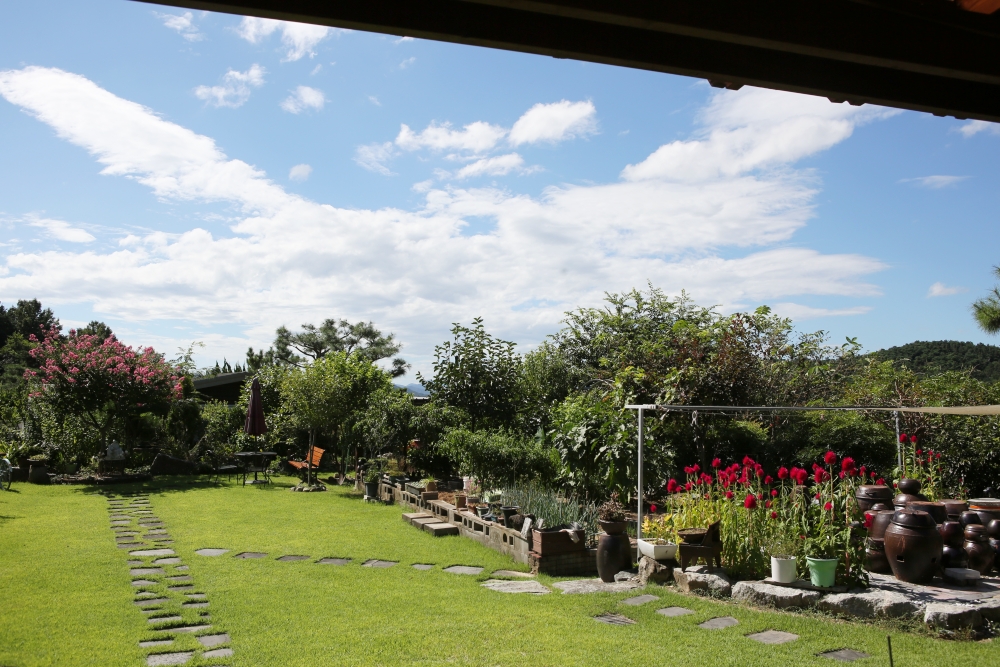 1.5시간 정도 정원 손질로 하루를 시작 합니다.
