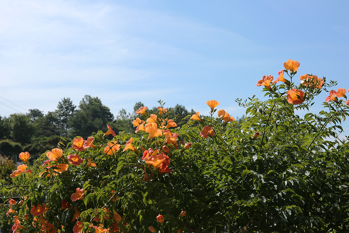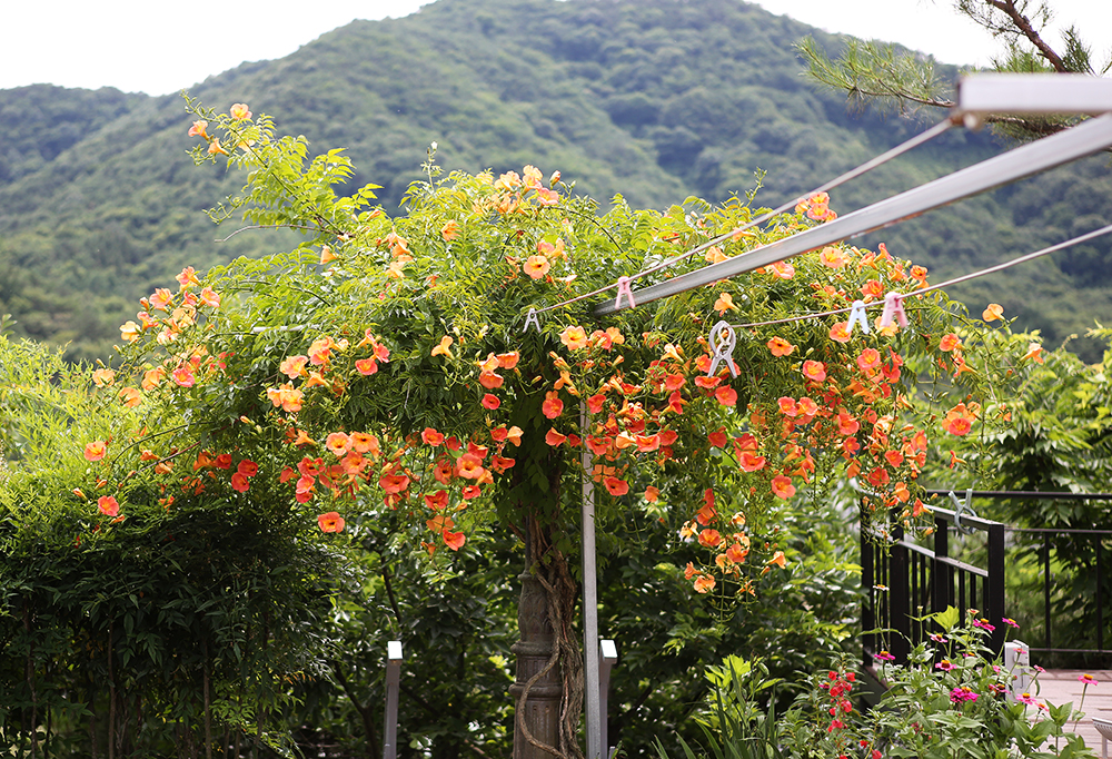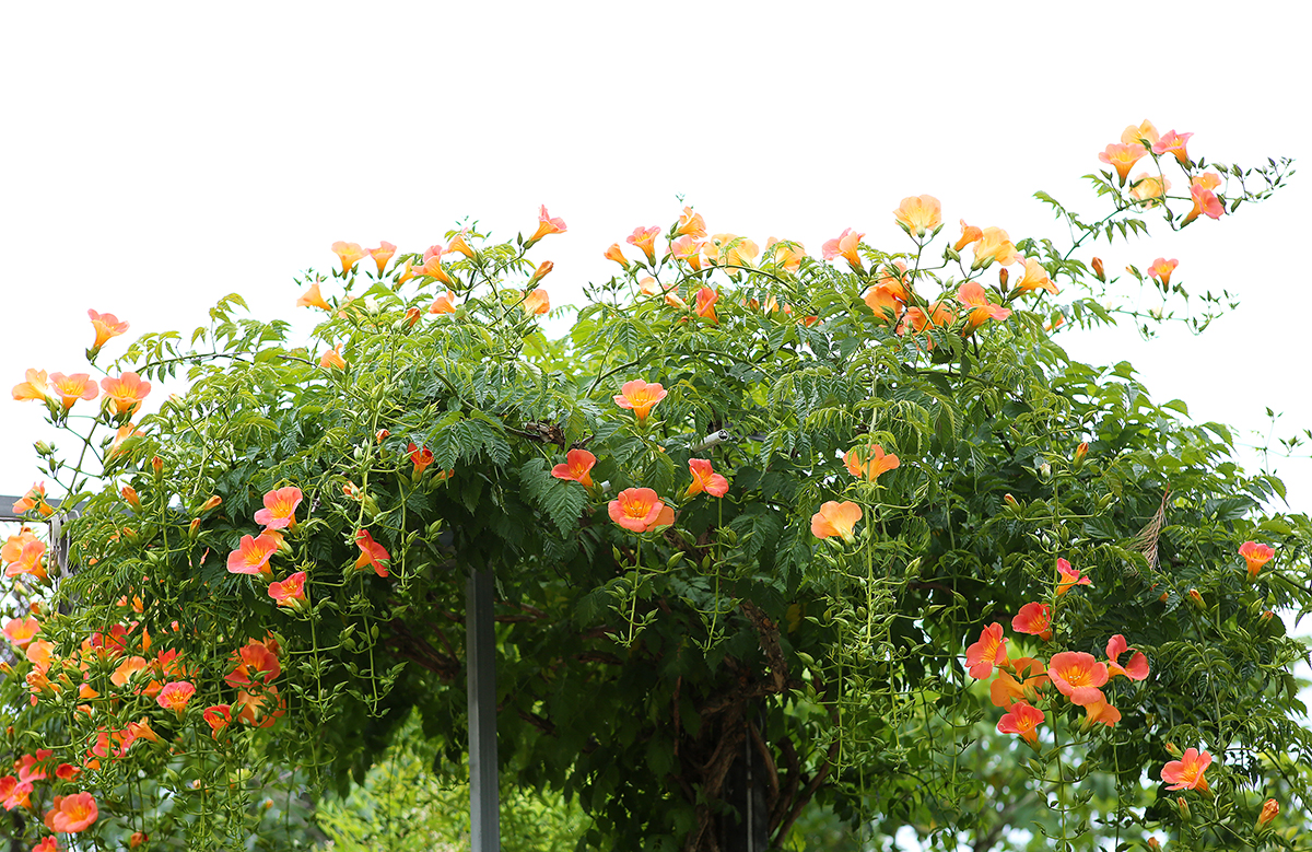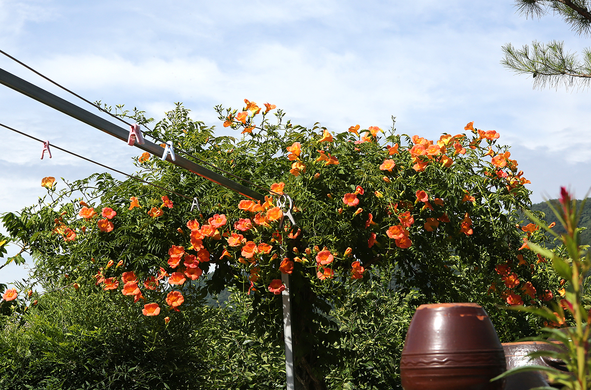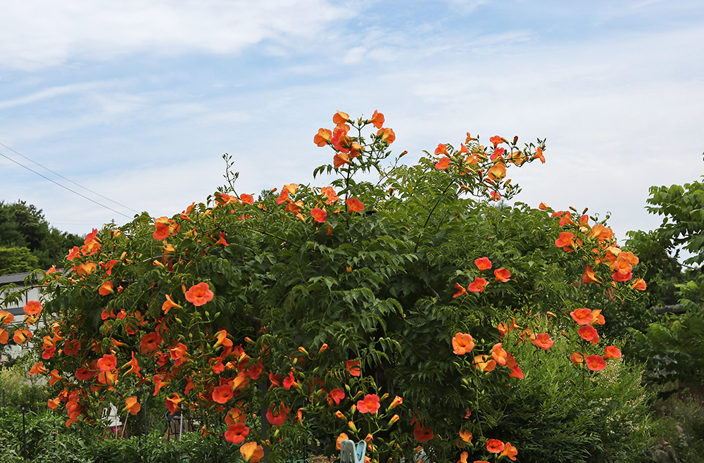 겨울에 능소화의 가지치기를 해 주었는데 당년지 가지에서 꽃이 피는 능소화가 올 여름엔 제법 모양새가 납니다.
