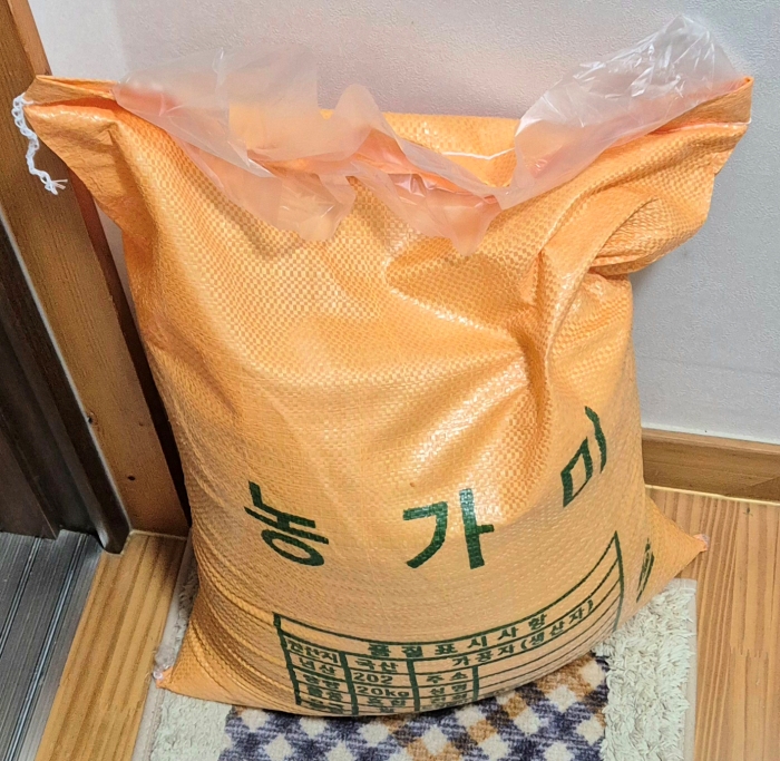 오늘 쌀은 햅쌀 이라면서 가져왔는데 받지 않을 수도 없고