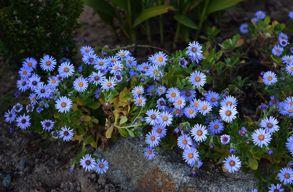 보라색과 푸른색 계열의 아름다운 꽃들이 핍니다.