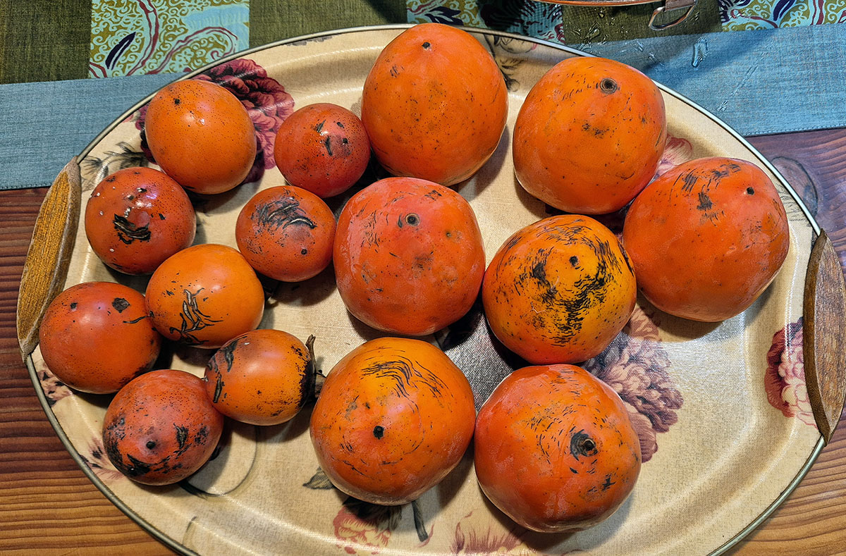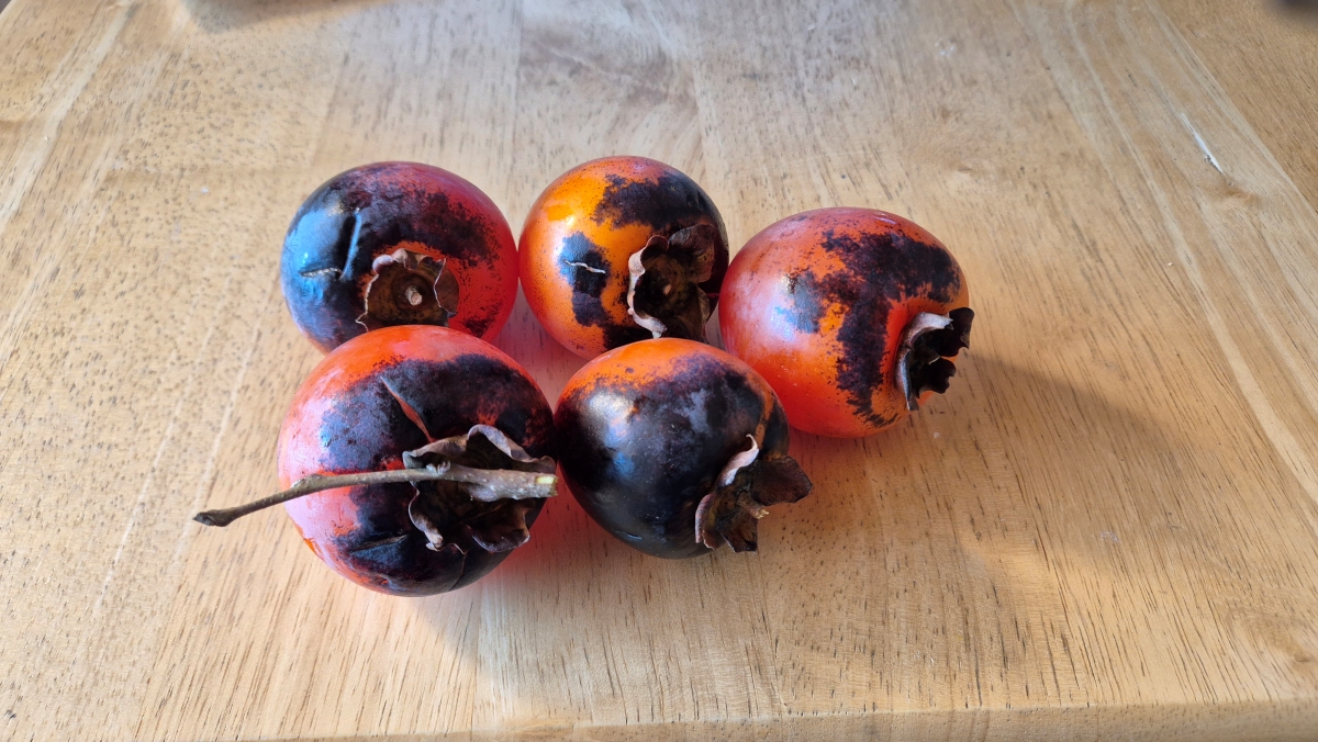 볕을 받는 쪽이 거멓게 된 감입니다.