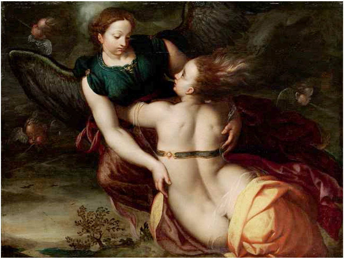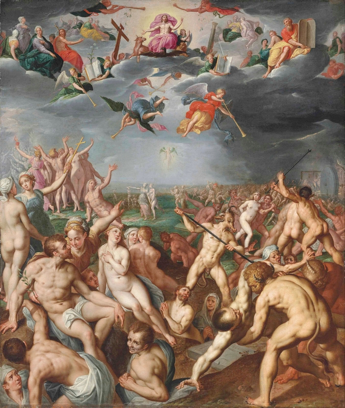모세를 발견하다사랑의 우화성 요한과 함께 있는 마돈나와 아기십자가 처형(좌측 날개), 히스기야 회복에 대한 예언(중앙 패널), 수도원장 Jacob D아폴로와 팬의 경연여신 Iris가 바다에서 불어오는 유리한 바람의 도움으로 Dido를 구한다오순절인간의 세 가지 나이에 대한 우화최후의 심판 , c. 1583최후의 심판파리의 심판헬렌의 침실로 받아들여진 파리스
