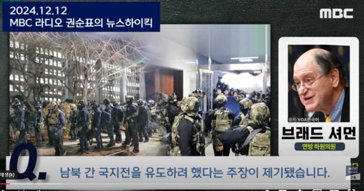 JTBC TV - 셔먼 의원, 한국 대통령 계엄령 비난