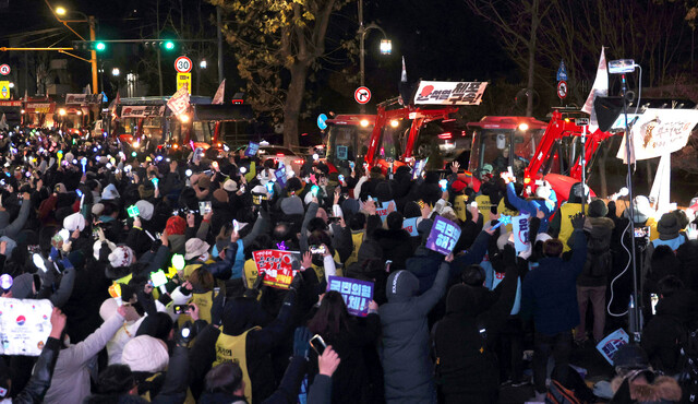 농민들의 '전봉준 투쟁단'이 추운 겨울에 트랙터를 몰고 상경해