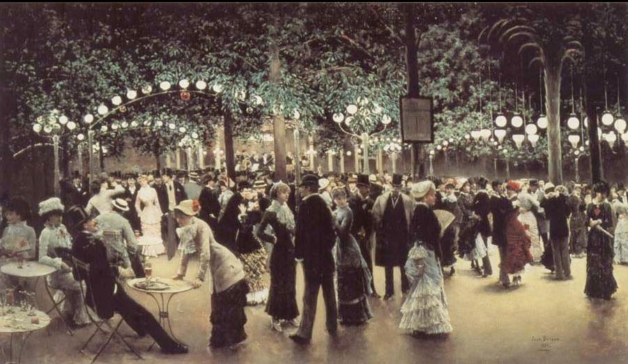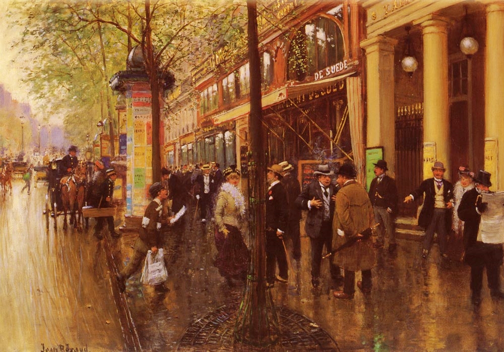 장 베로 ( Jean Béraud 1849년 1월 12일 ~ 1935년 10월 4일)는 파리의 삶과 파리 사회의 밤 문화를 묘사한 많은 그림으로 유명한 프랑스 화가 였습니다. 샹젤리제 거리 , 카페, 몽마르트르 , 센 강변 의 그림은 19세기 말부터 제1차 세계 대전 발발 (1914년)까지의 일상 파리 생활을 정확하게 자세히 묘사한 그림이다.