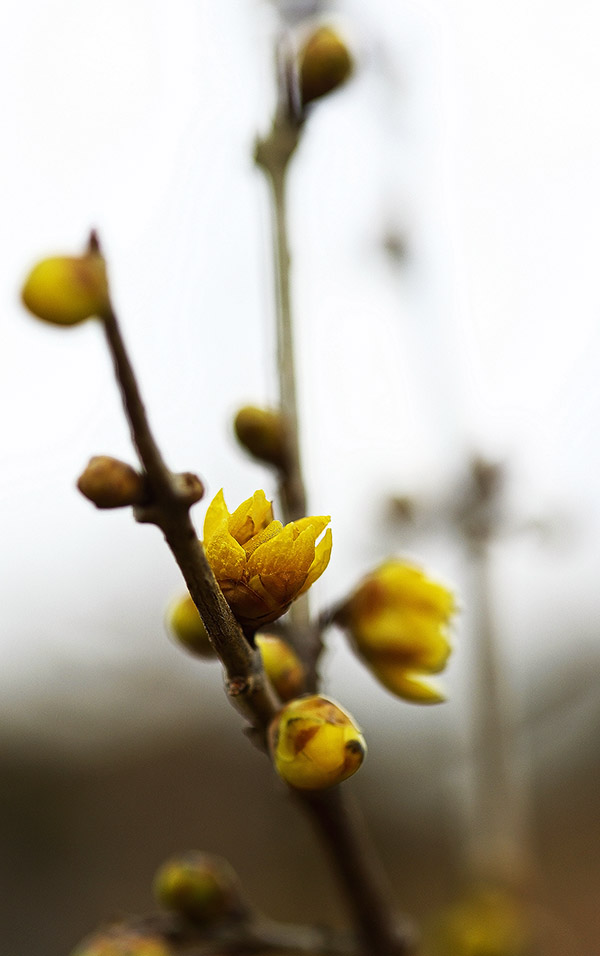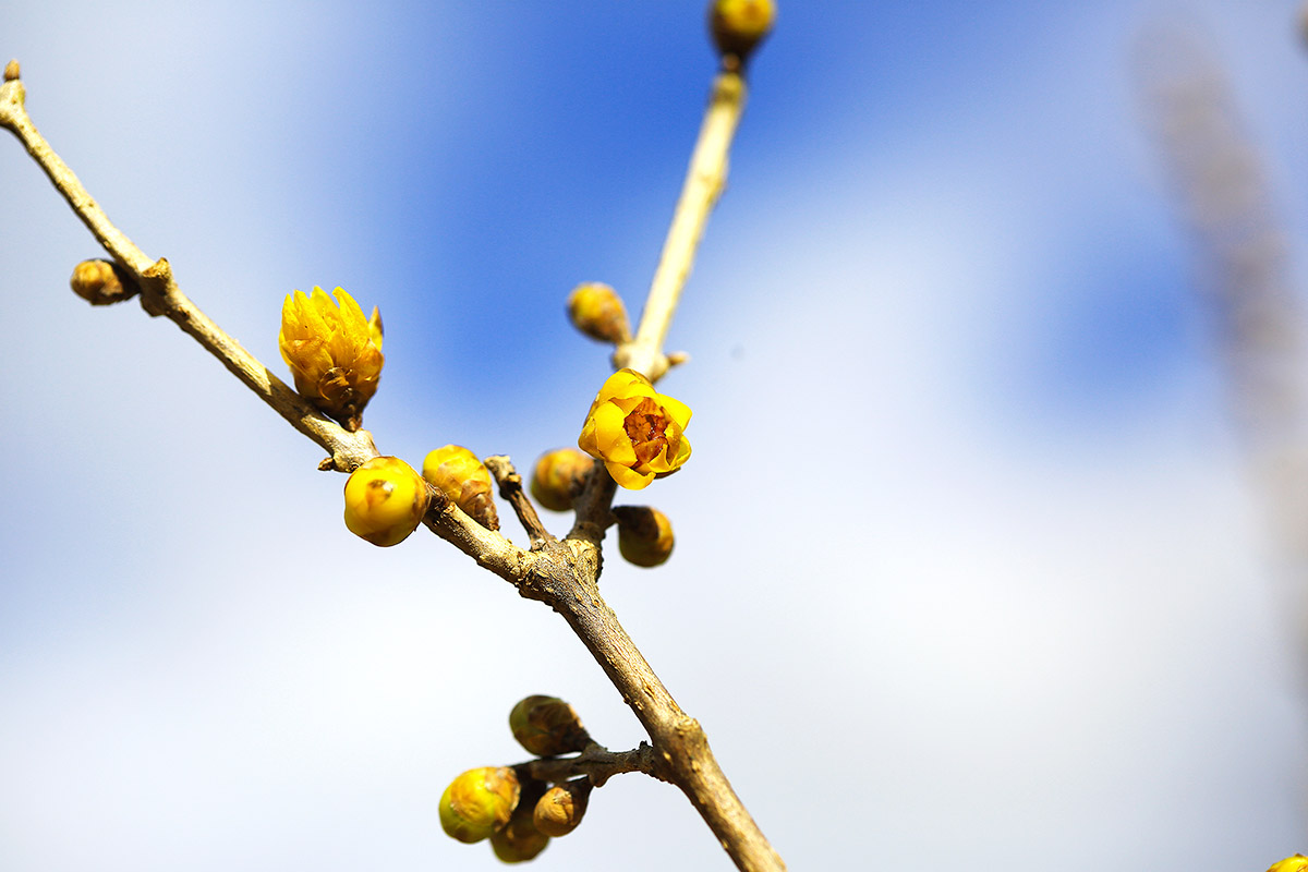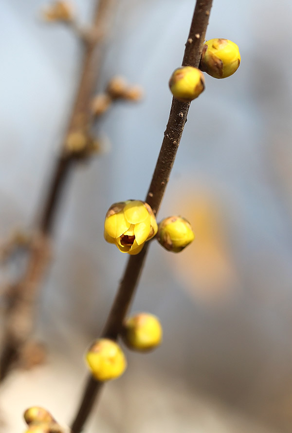 정원의 ‘납매가 꽃봉오리를 물더니