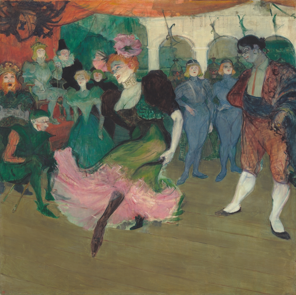 귀족 가문에서 태어난 툴루즈 로트렉은 사춘기 무렵에 두 다리를 희귀 질환인 비대성 골수증 때문에 성인이 되어서는 다리가 너무 작아서 키가 매우 작았습니다. 그는 알코올 중독 외에도 매춘굴과 매춘부에 대한 애정을 키웠고, 이는 그의 많은 작품의 주제가 되었으며, 이 작품들은 19세기 후반 파리의 보헤미안 라이프스타일을 자세히 기록하고 있습니다. 그는 후기 인상파 화가 로 묘사되는 화가 중 한 명 으로, 폴 세잔 , 빈센트 반 고흐 , 폴 고갱 , 조르주 쇠라 도 일반적으로 이 느슨한 그룹에 속하는 것으로 간주됩니다.