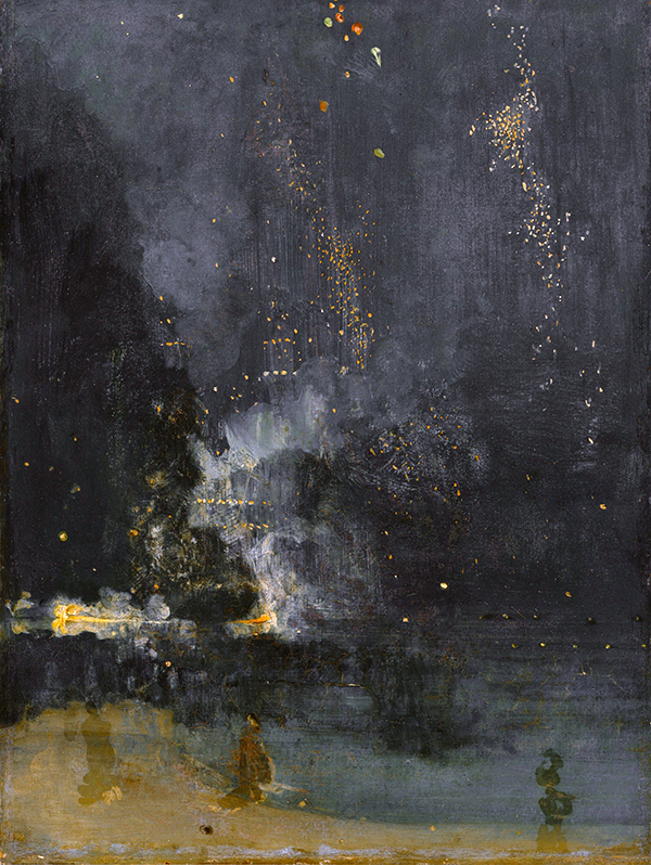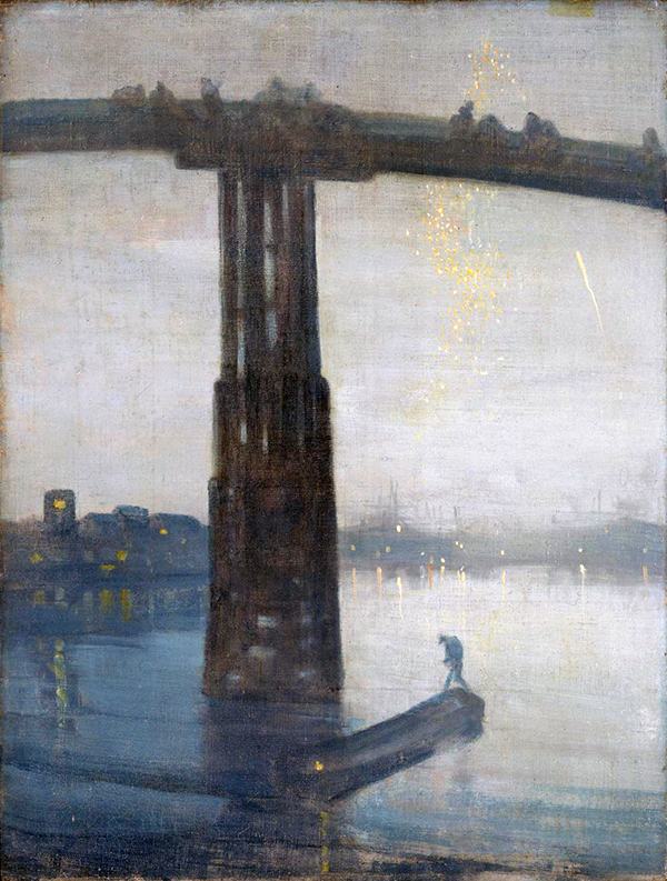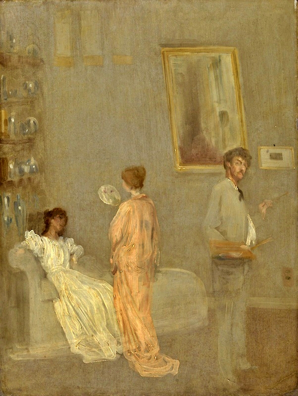 그의 그림에 대한 그의 서명은 꼬리 대신 긴 침이 달린 양식화된 나비의 모양을 띠었다. 그는 그림과 음악 사이에 유사점을 발견했고 그의 그림 중 많은 부분에 "편곡", "화음", "야상곡" 이라는 제목을 붙여 음조적 화음의 우선성을 강조했다. 그의 가장 유명한 그림인 Arrangement in Grey and Black No. 1 (1871)은 일반적으로 Whistler's Mother 로 알려져 있으며, 존경받고 종종 패러디된 모성의 초상화이다. Whistler는 그의 미적 이론 과 다른 주요 예술가 및 작가와의 우정 으로 당시의 예술계와 더 광범위한 문화에 영향을 미쳤다.
