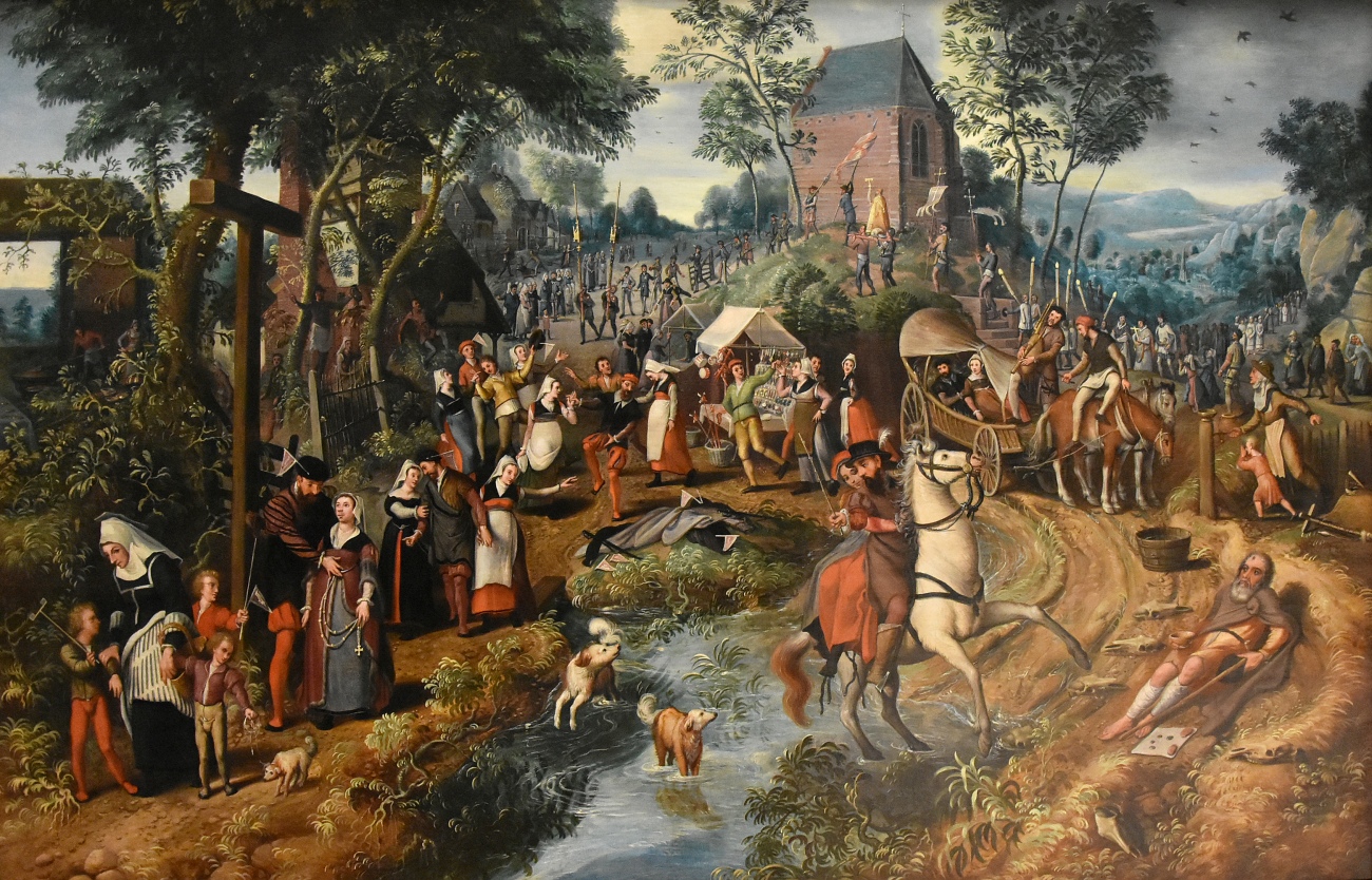 헤롯의 괴롭힘을 피해 이집트로 가는 여정에서 구호품을 나눠주는 성가족. 다양한 음식 - 전경의 접시, 고기, 햄, 라드, 훈제 생선, 돼지 다리와 머리, 빵, 버터, 우유, 치즈, 매달린 프레즐(왼쪽 모서리) - 이 관람객 앞에 펼쳐져 있다. 소시지, 소고기, 생선, 가금류, 돼지고기를 포함한 다양한 고기가 바구니, 냄비, 접시를 사용하여 나무 테이블에 배열되어 있다. 통과 몇 개의 고리버들 의자가 음식을 담는 용기 역할을 한다.