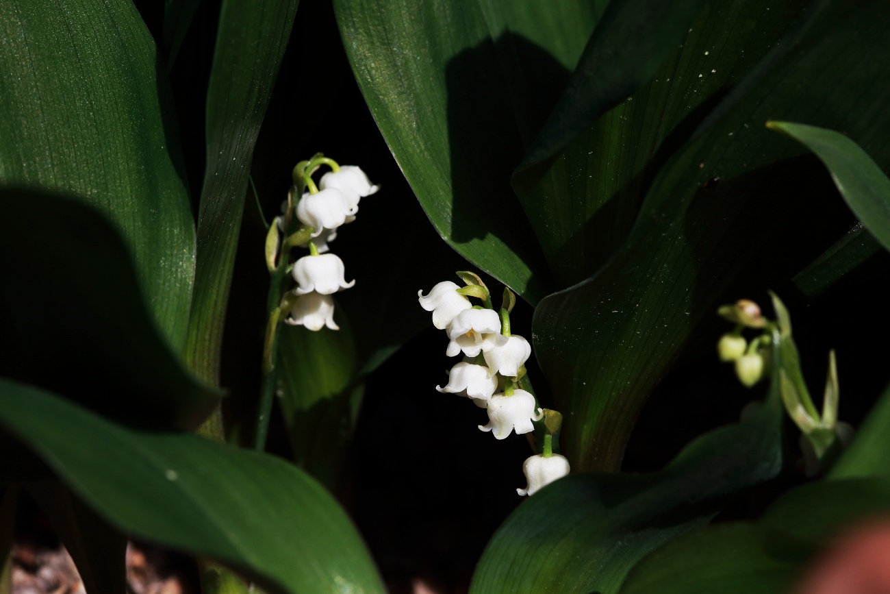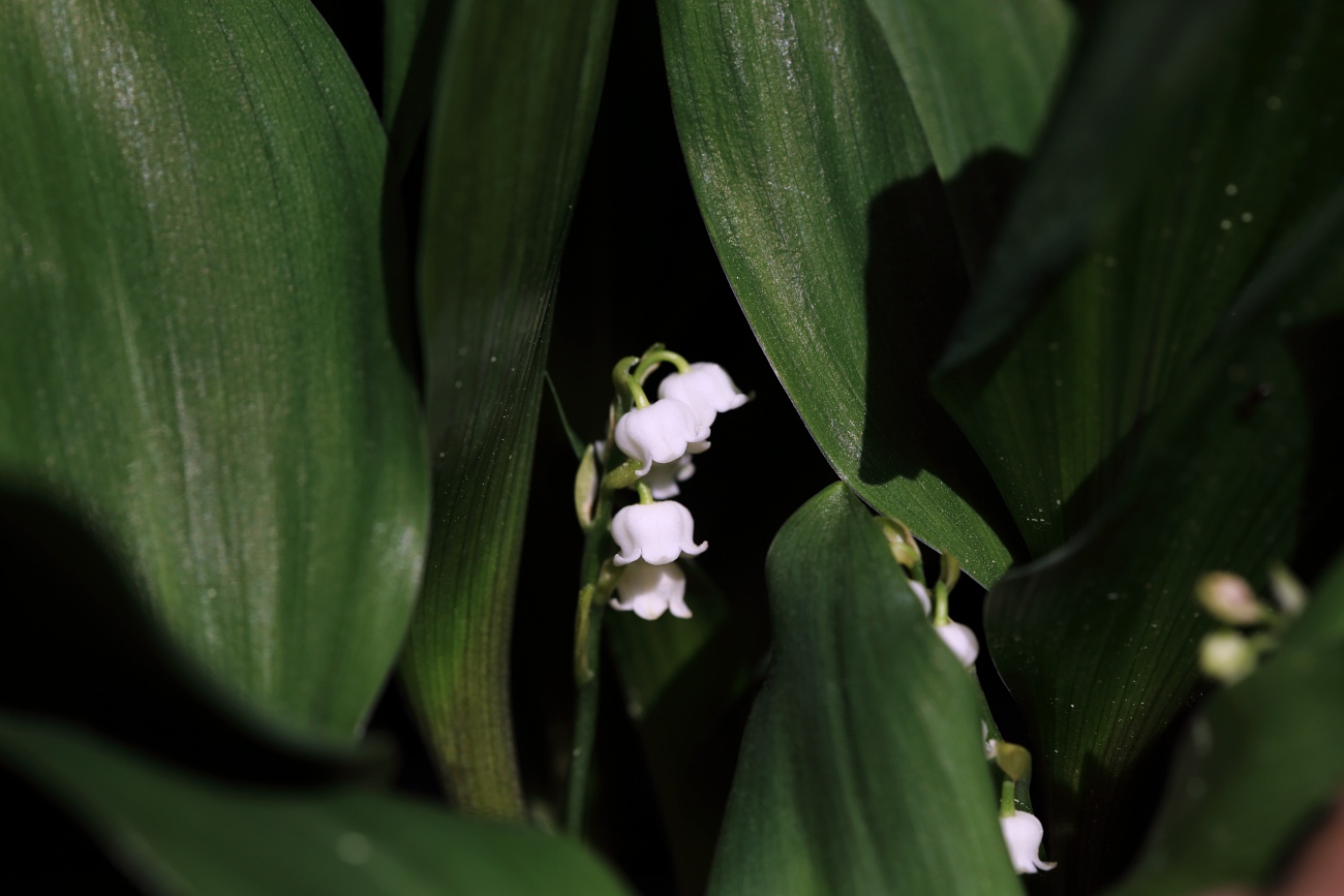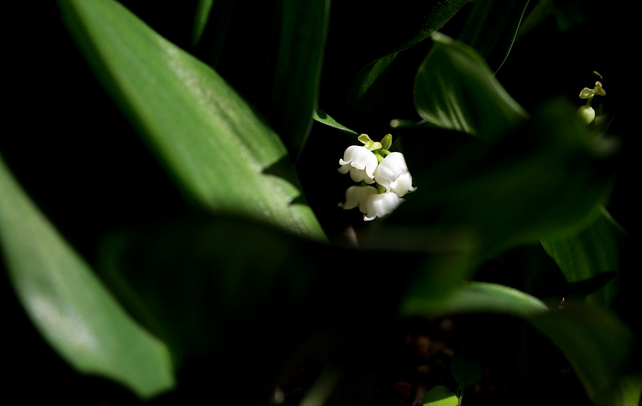 은은방울 꽃은 넓은 잎 사이에 숨어서 피기 때문에