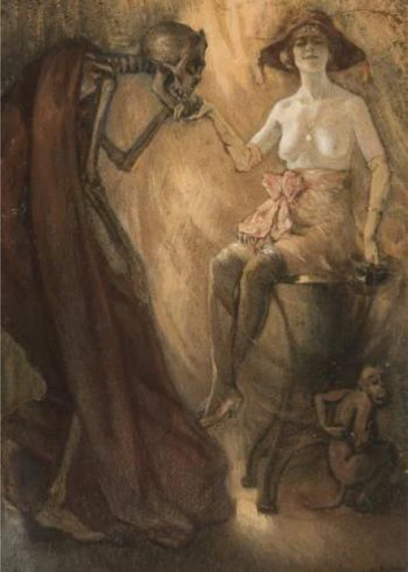 얀 프란스 드 보버 ( Jan Frans De Boever ,1872년 6월 8일 ~ 1949년 5월 23일)는 벨기에 상징주의 화가로, 음울한 분위기 속에서 관능적인 나체 여성을 그린 그림으로 유명했습니다. 그의 작품에는 해골, 죽음, 그리고 에로티시즘이 넘쳐납니다.