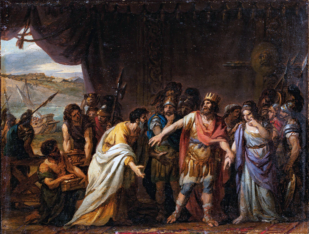 텐트 안의 아가멤논은 크리세이스를 아버지에게 돌려주기를 거부